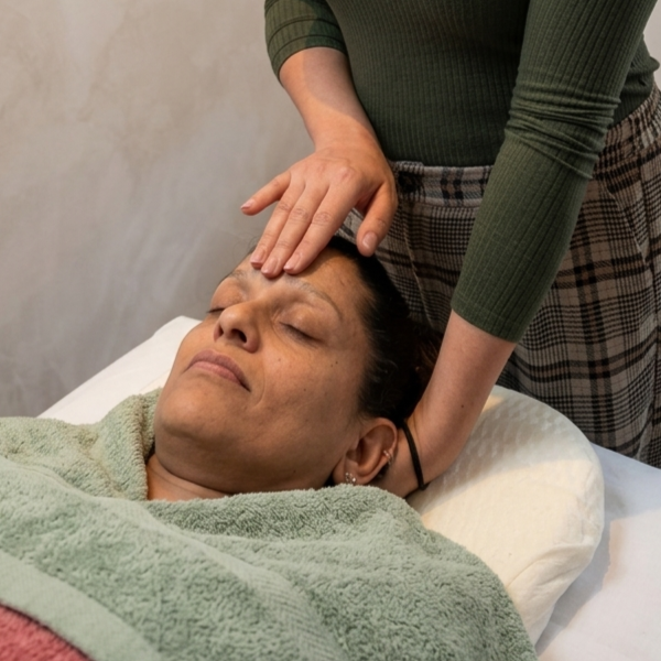 Você deita confortavelmente em uma maca, relaxa, fecha os olhos… e o terapeuta toca suavemente os 32 pontos na sua cabeça.